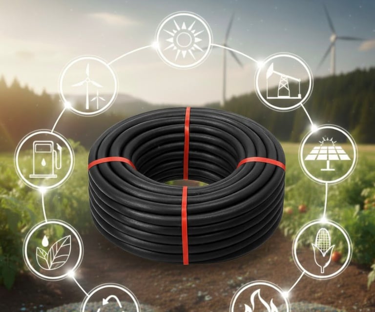 Promovemos la sostenibilidad a través del reciclaje de plásticos, incorporándolos como materia prima en la fabricación de mangueras para riego, invernaderos y minería. Cada producto refleja nuestro compromiso con la calidad y el cuidado del medio ambiente.